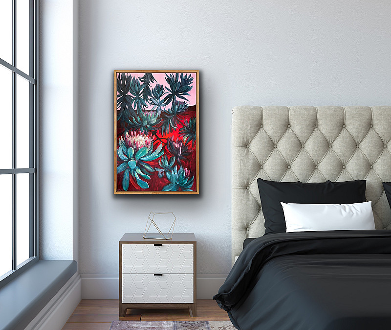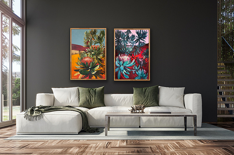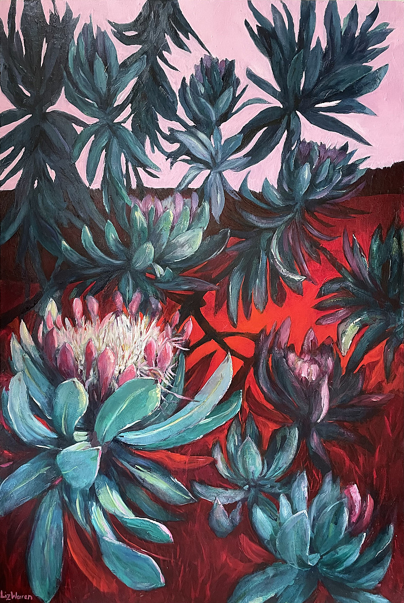 Cathedral Peak, Silver Protea, Liz Warren , Oil on Canvas