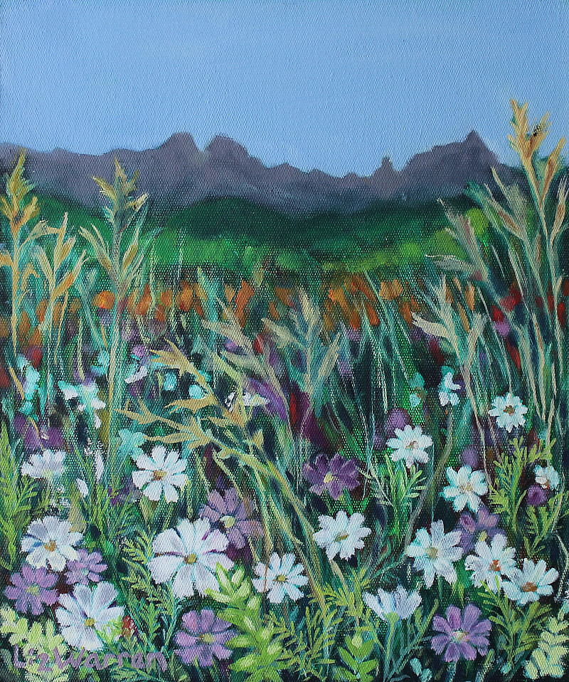 Cosmos flowers in the Cathedral peak area based on photos taken while we were on holiday there in April.