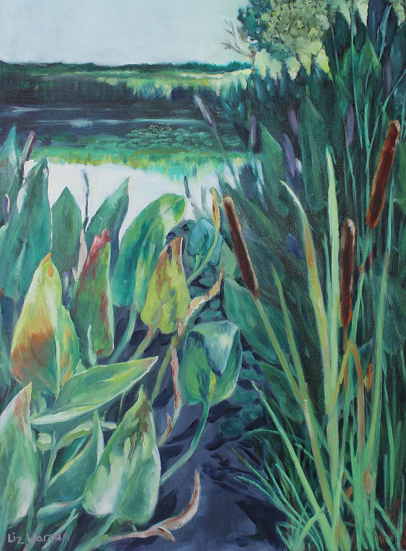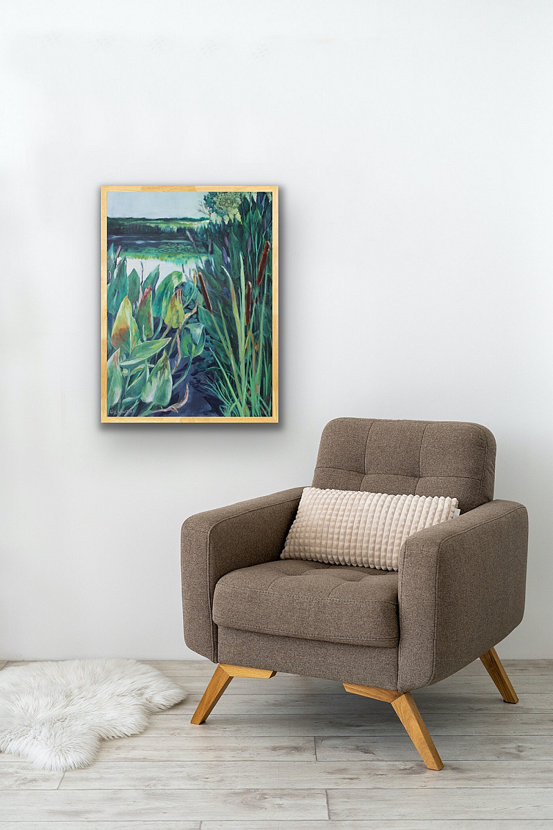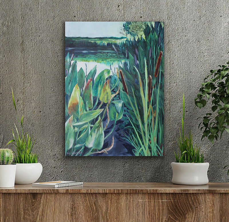 Early Morning light at the Top Dam at Emmarentia Botanical Gardens. This is a favourite swimming spot for my dogs, the reeds and water lilies move with the currents so the patterns are always changing. This painting forms part of the body of work for the "September: 2022 art exhibition.