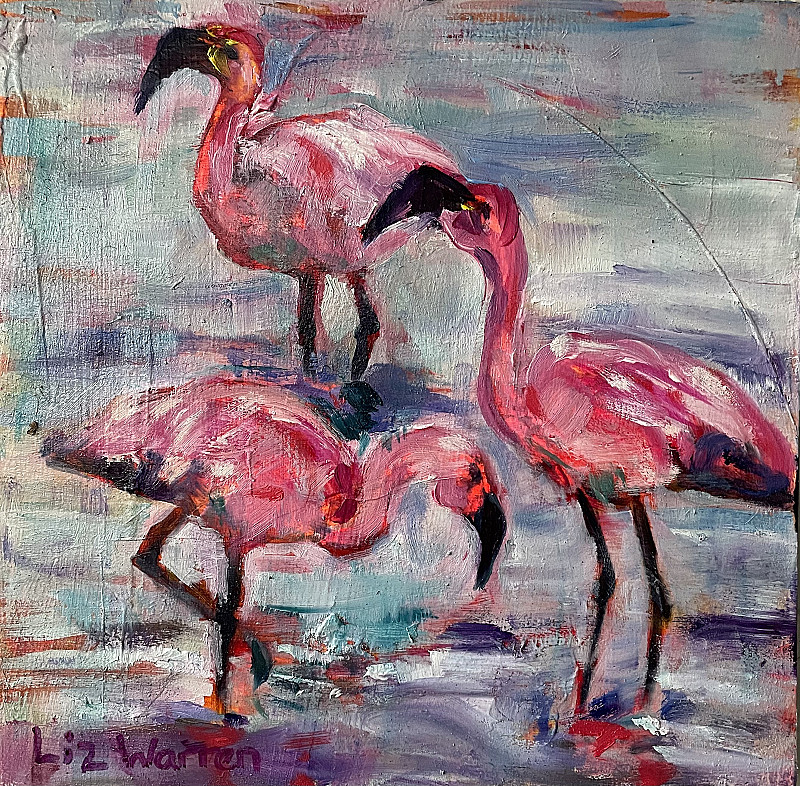 I had such a positive response to my first pink flamingo paining that I had to expand the flock.