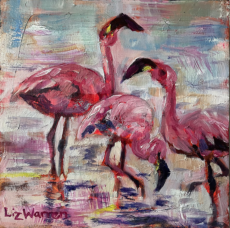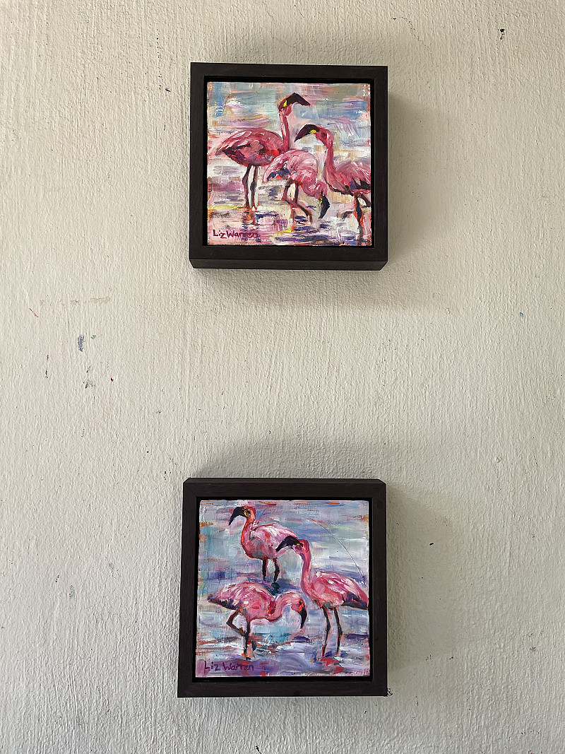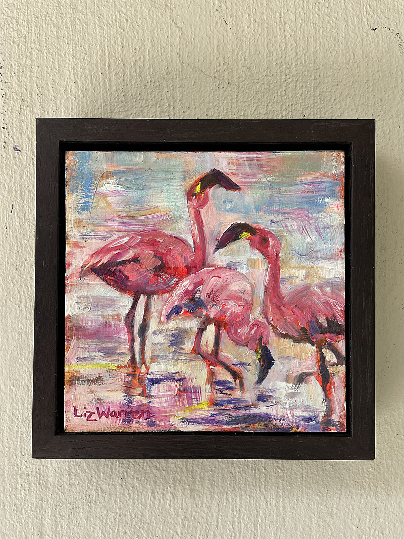 I had such a positive response to my first flamingo paining that I had to expand the flock. This one is still available for sale.