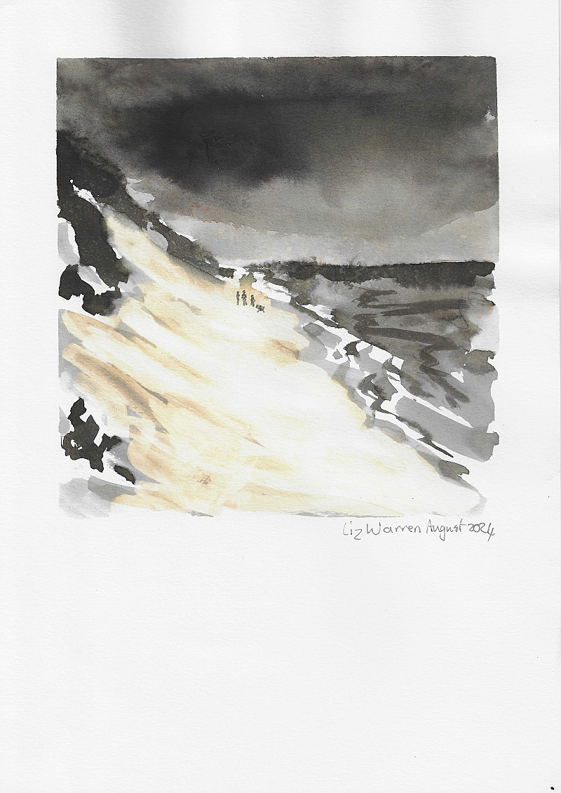 This drawing was done as a preparatory sketch for Greg Kerr's Gathering Storm workshop. Based on photographs I took while on a dive trip to Sodwana bay in South Africa. Bleach and soluble drawing ink were used in this work.