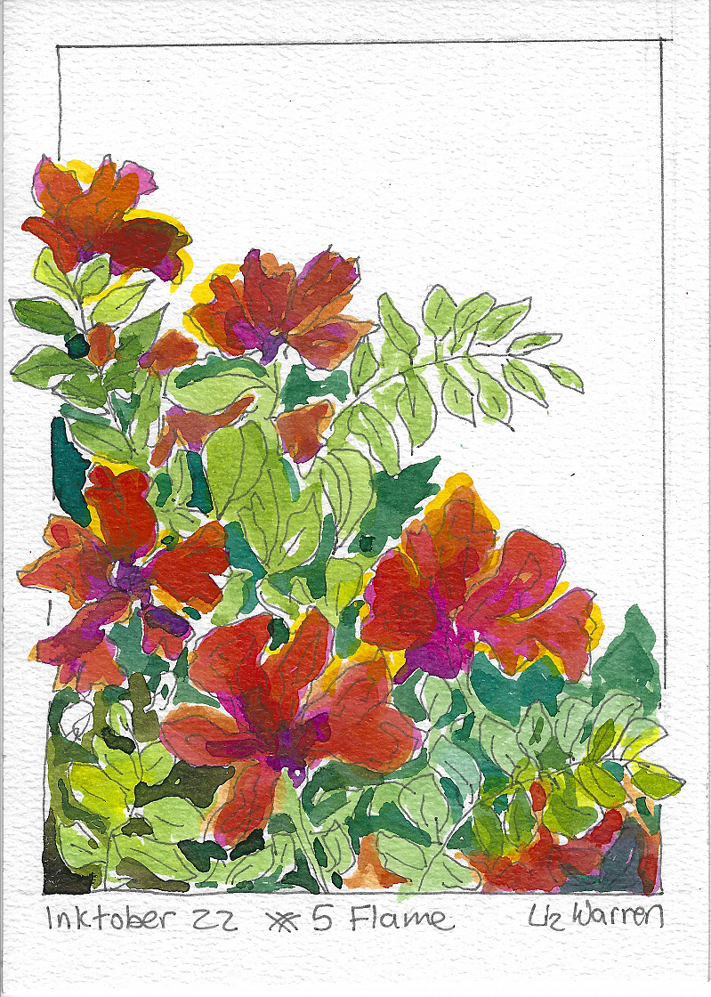 Inktober 2022: Day 5: Flame. Pen and Ink wash drawing on