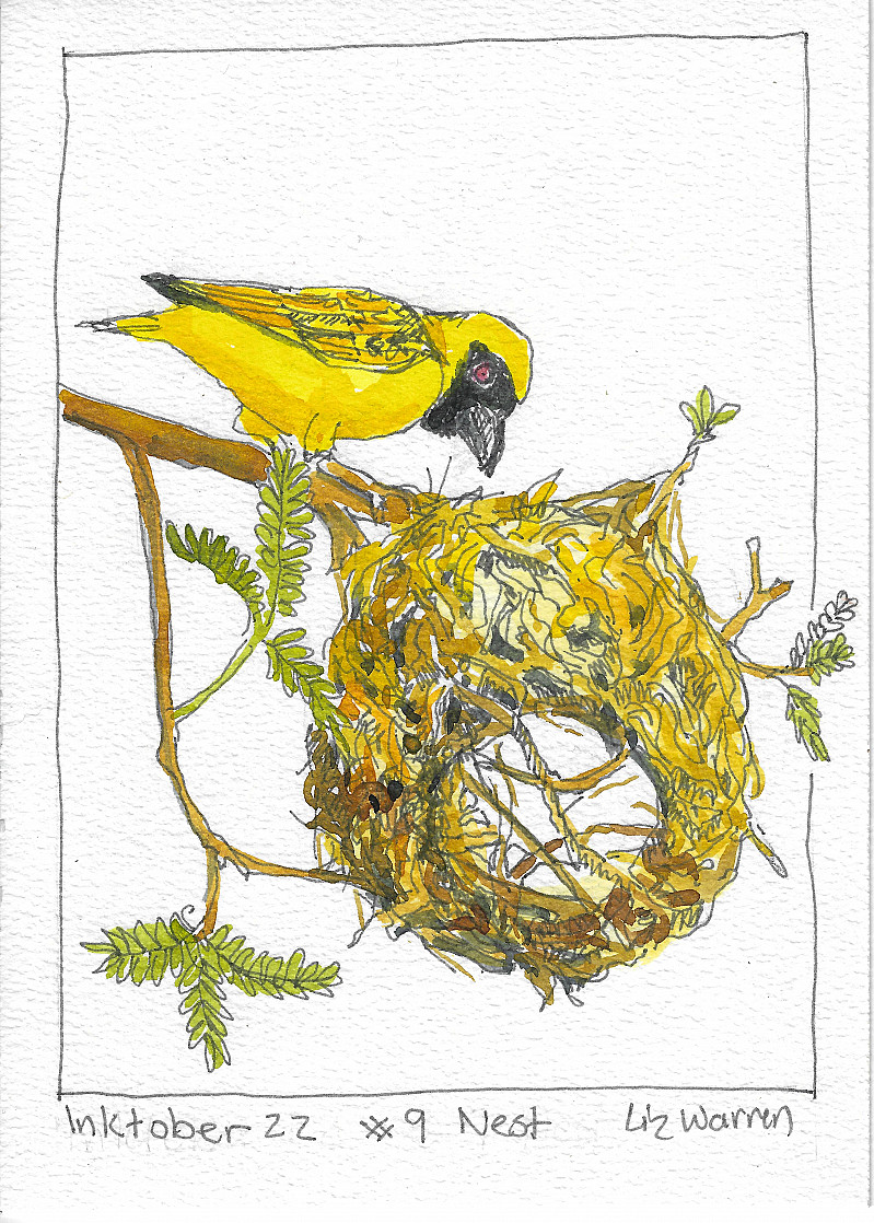 Inktober 2022: Day 9: Nest. Pen and Ink wash drawing on