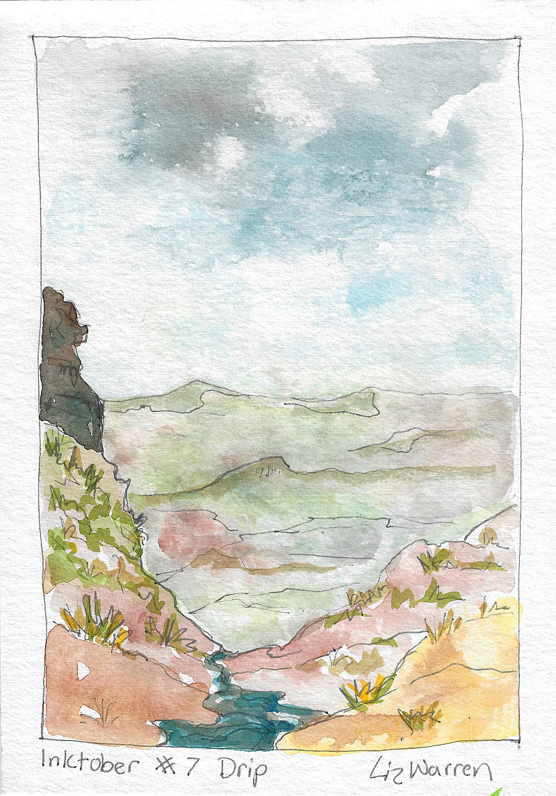 Inktober 2023: #7 Drip, the Tugela falls may be the tallest waterfall in the world but in the dry season it often slows down to a drip.