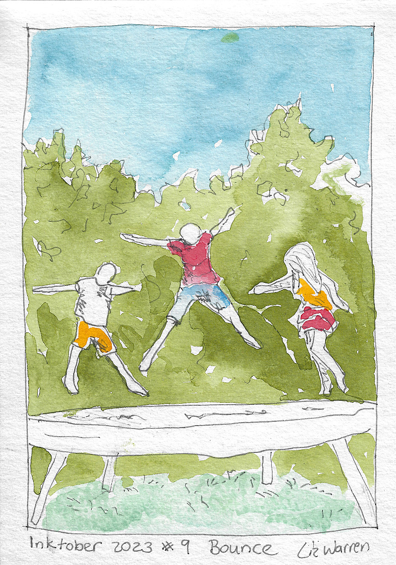 Inktober 2023 #9 Bounce. kids bounce for fun.