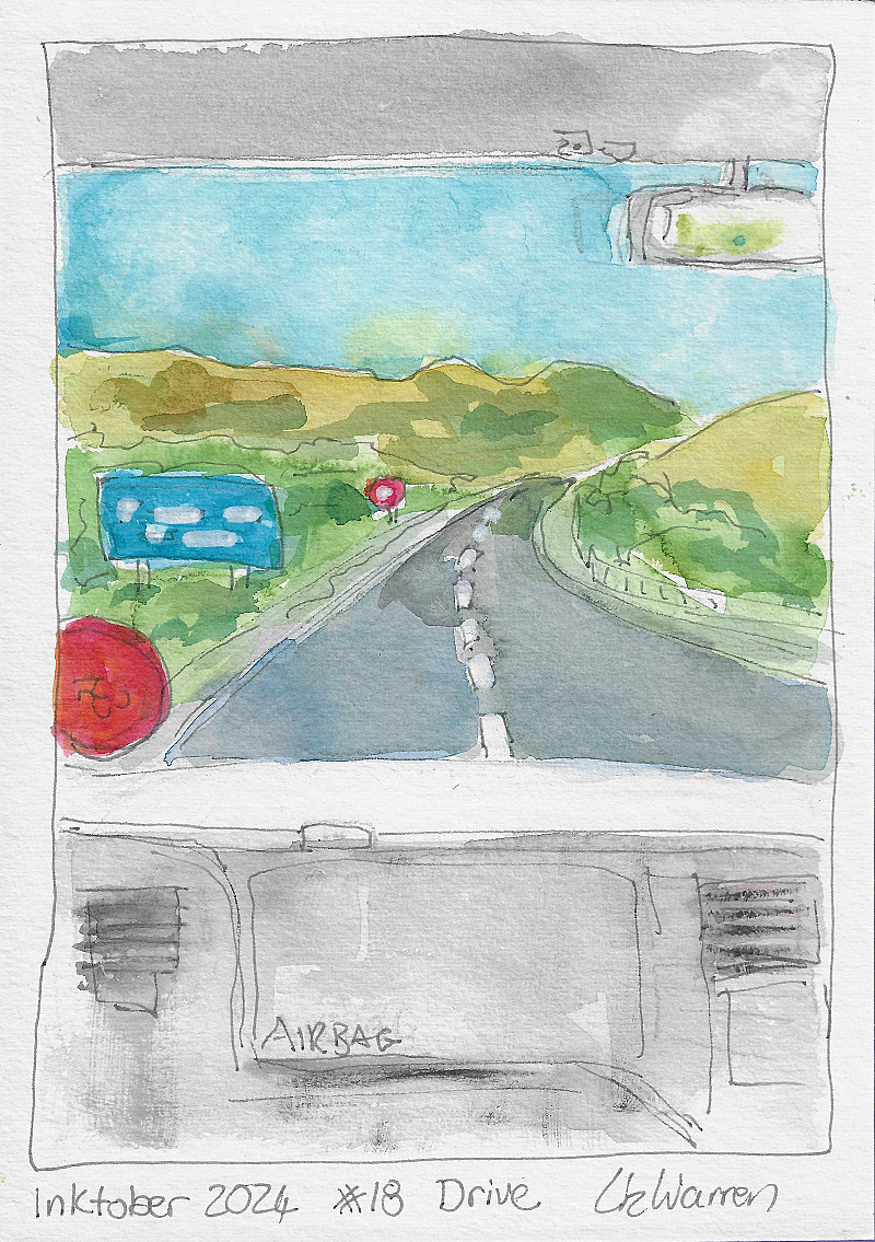 Inktober 2024 # 18 Drive. i love this drive out to our cottage over the Magaliesberg mountain.