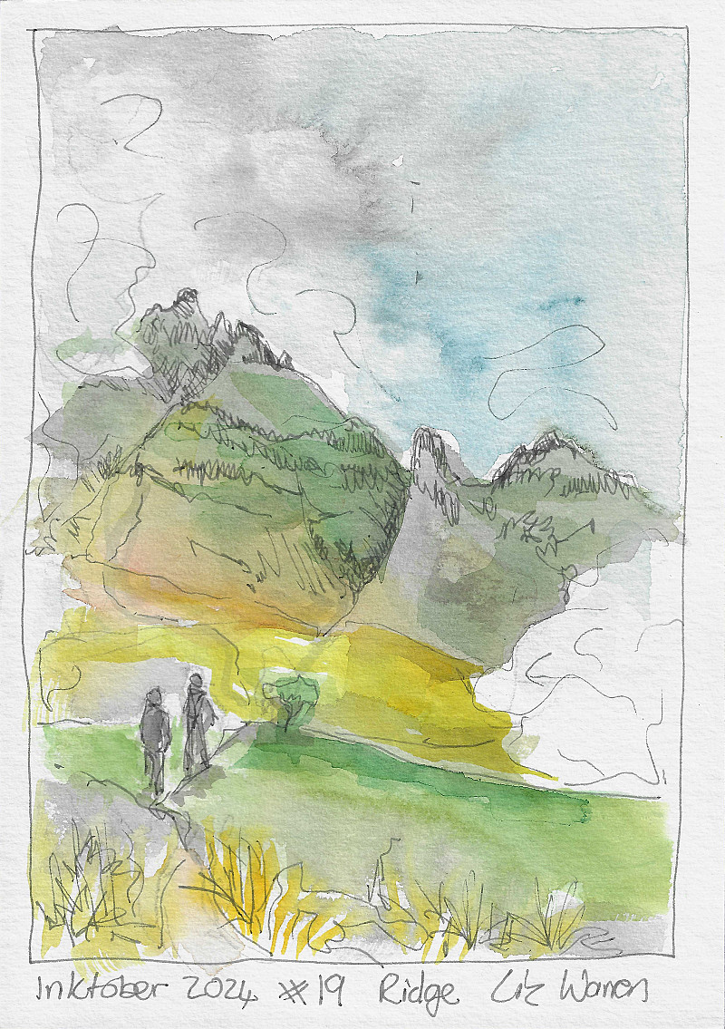 Inktober 2024 #19 Ridge. The ridge up to Blind Mans Corner Monks Cowl Drakensberg.