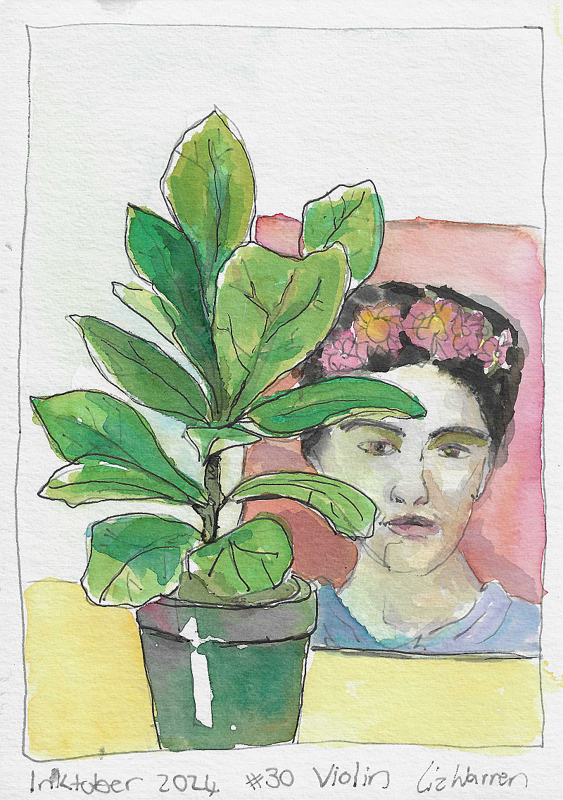 Inktober 2024 #30 Violin. the Violin plant. Loved this randomly odd photo with Frieda Karlo.