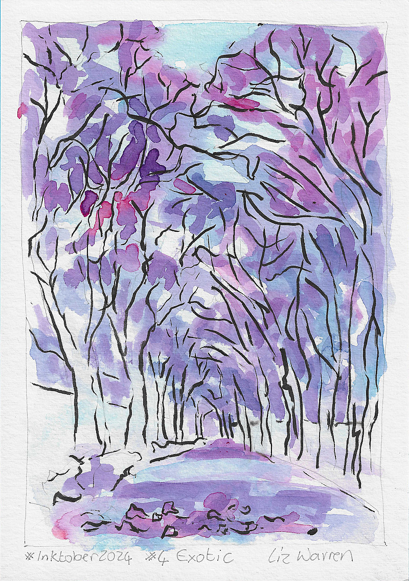 Inktober 2024 #4 Exotic. in October every year the streets of Johannesburg an Pretoria are a purple haze of jacaranda blooms.