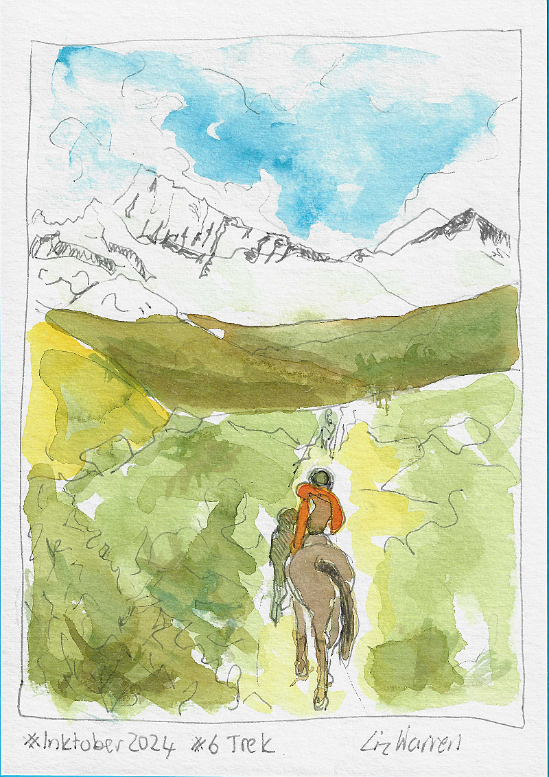 Inktober 2024 3 6 Trek. Tom on Biscotti while we were doing the Santa Cruz trek in Peru in 2016.