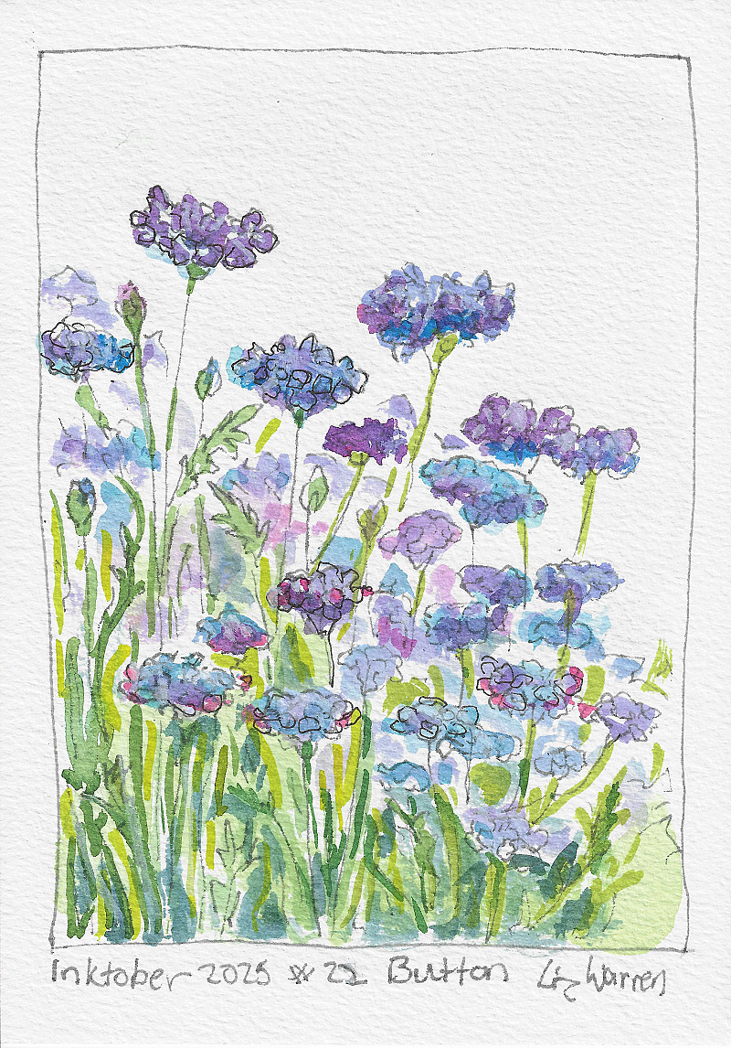 Inktober 2025 Day 22: Button. Corn flowers are also known as Bachelor's Buttons
