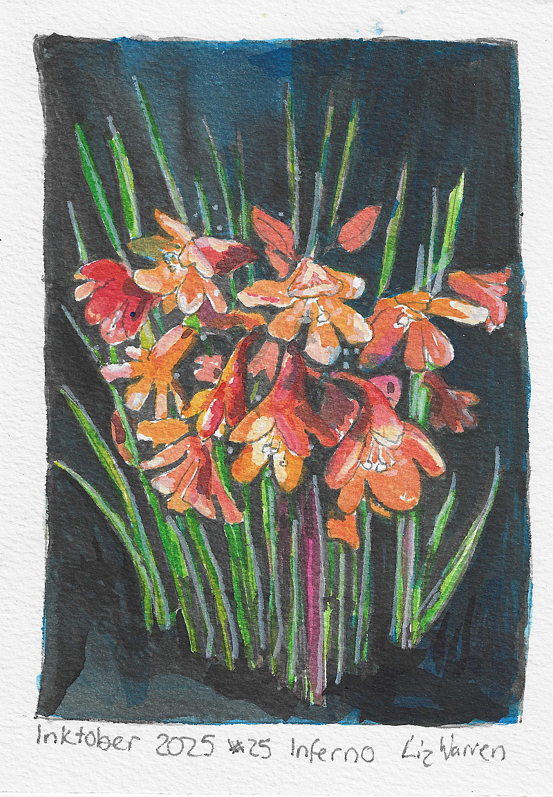 Inktober 2025 Day 25: Inferno. Fire Lilies (Cyrtanthus Ventricosus) only flower after a fire. Found in the Drakensberg.