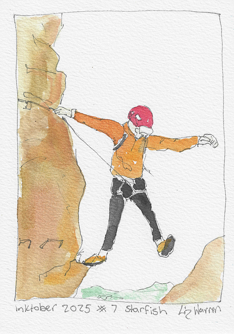 Inktober 2025 Day 7 Starfish. Bongani doing some crazy moves on the via ferrate up Buttress peak in the Drakensberg.