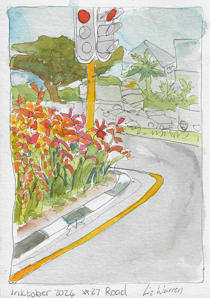 Inktober 2024 #Road the intersection of main and Winnie Mandela. love the flowers