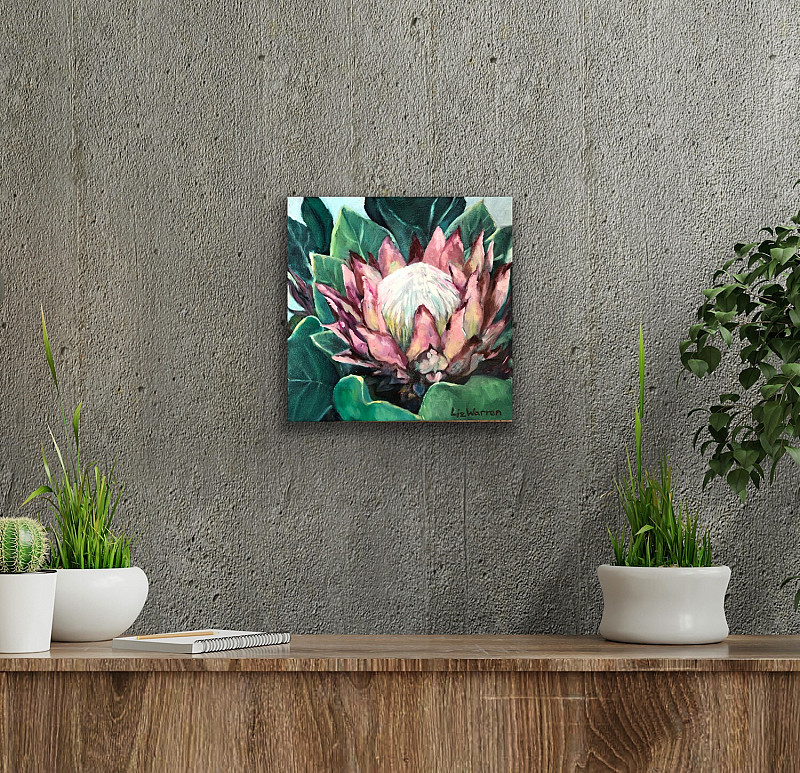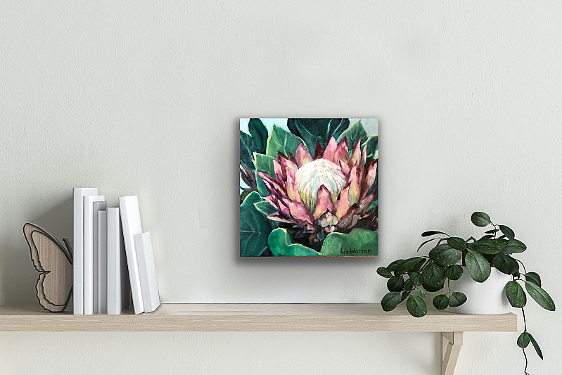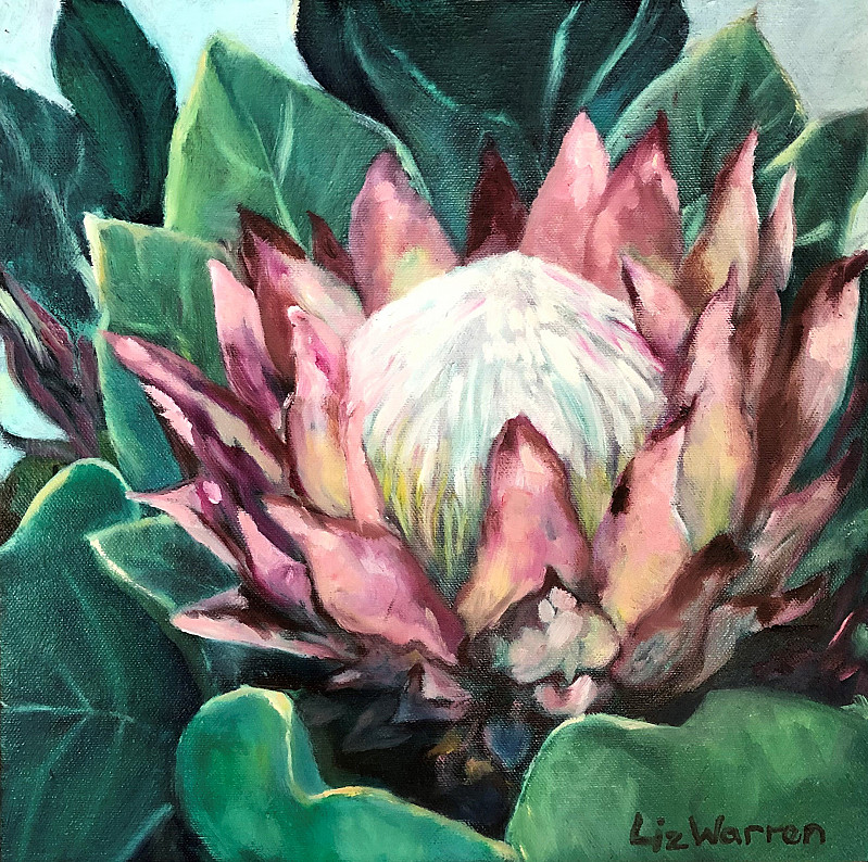 Kogelberg King Protea, painted from a photograph taken by the artist while hiking in the mountains of the Western Cape.