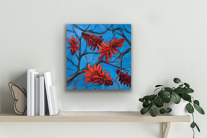 Bright glourious Erythrina flower always so spectacular against a bright blue sky.