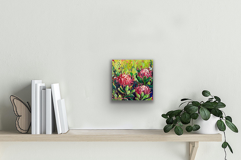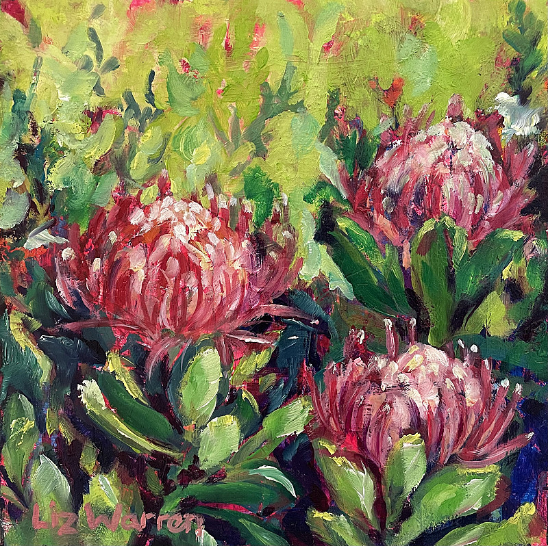 Bright and cheerful Pincushion Proteas. This painting will be included in the White River Gallery Summer Exhibition December 2023.