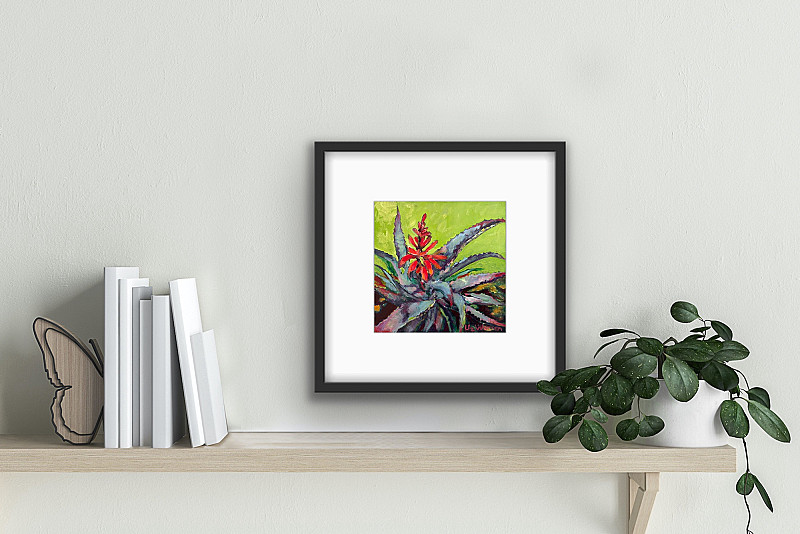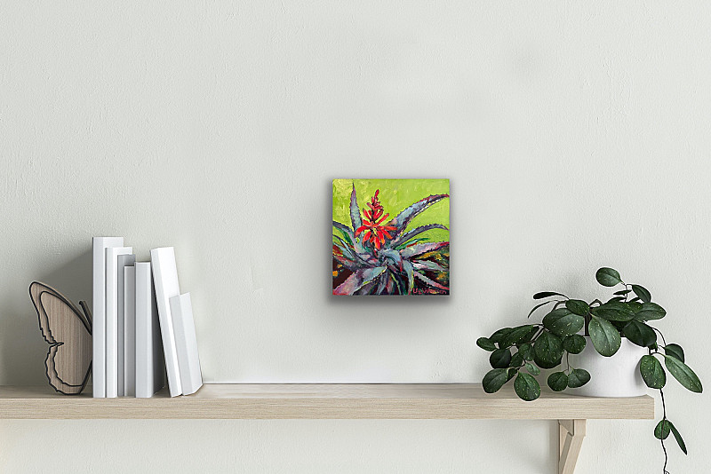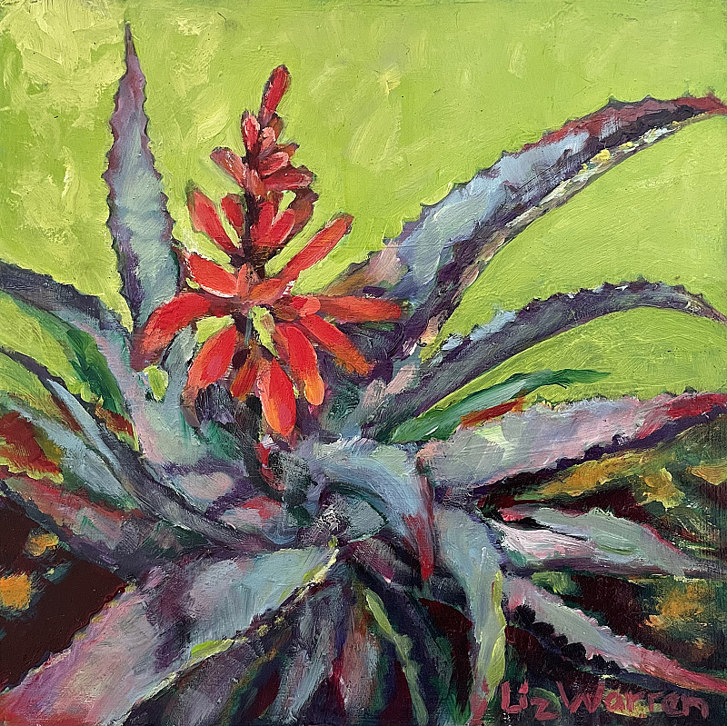 I so enjoy this energetic aloe flowering in the Magaliesberg mountains. the leaves show the dry season colours of almost blue and purple. in summer they are bright green. This painting will be included in the White River Gallery Summer Exhibition December 2023.